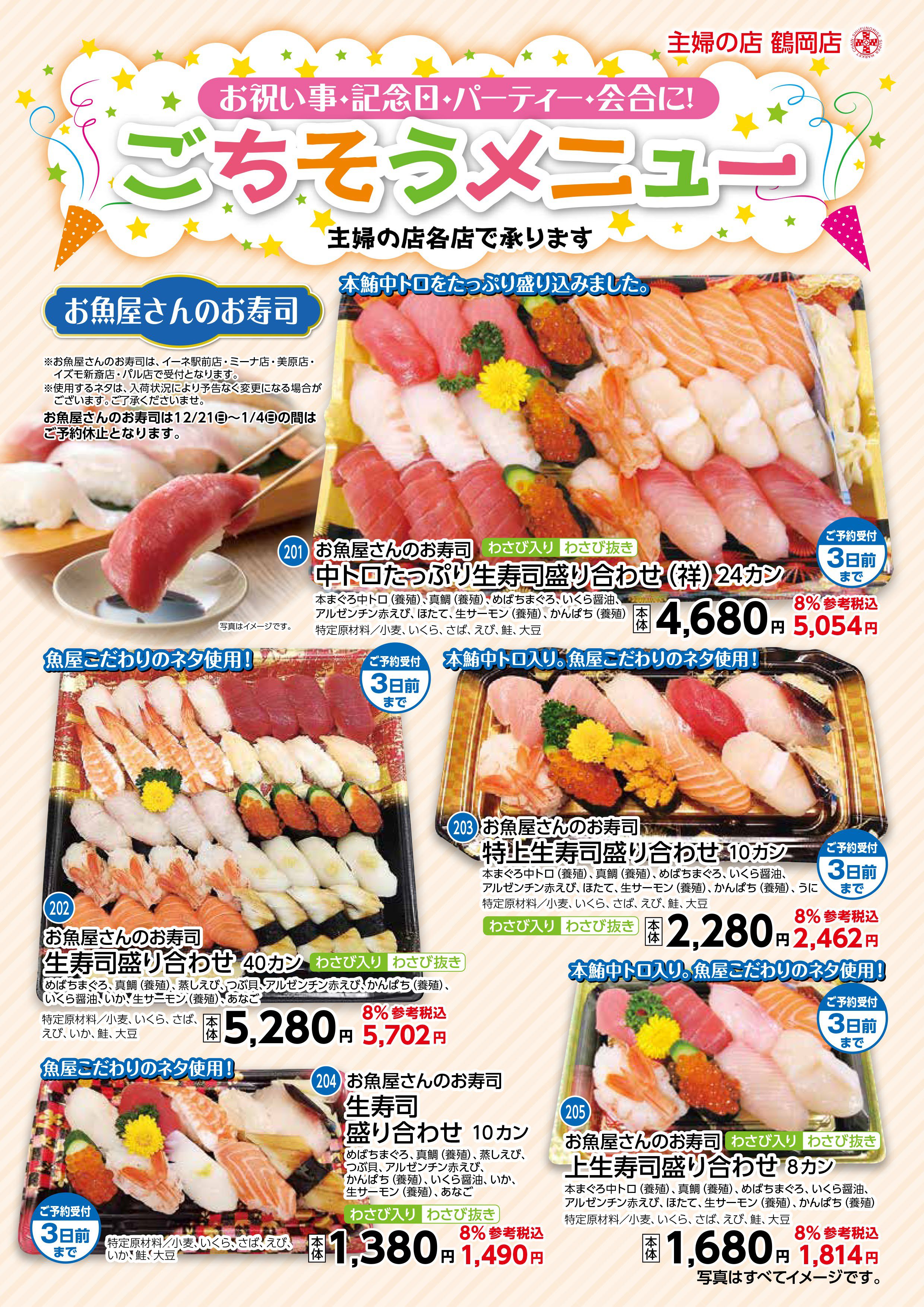 お祝い事・記念日・パーティー・会合に「ごちそうメニュー」